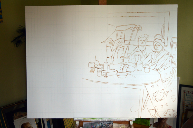 There is a deadline in February for entry in the Art In The Pearl art fair held on Labour Day weekend and I have a million ideas for several new series of paintings, but I haven’t done the model photo shoots yet, so I am trying to get another big one in the Royals series done in time for the application deadline. This is my family and I – I love this image and have been wanting to do it for some time now. I wish my studio was bigger though, as this painting would be great at 6 x 8′ instead of 3 x 4.’