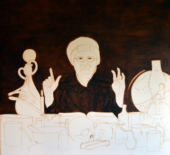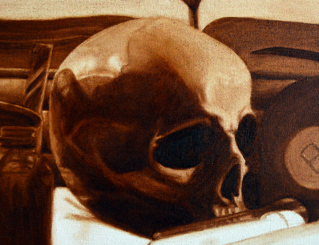 Here is a little tidbit from a new underpainting – painting skulls has become my new favourite thing.