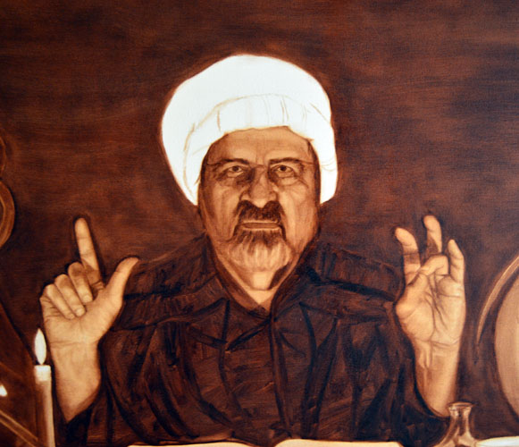 Today I slowly built up the skin by adding more and more burnt umber until finally it was dark enough. Tomorrow: glasses and hat.