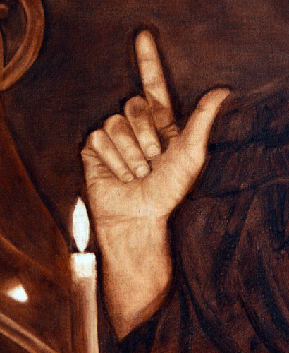 After I painted the background I took a brush dipped in mineral spirits and gently blurred the edges. I don’t want to have sharp lines everywhere, but rather a consistency to the painted surface. I think this is one of the many tricks that novice painters don’t know or don’t employ. It may seem unnecessary, but it helps to make a painting look polished.