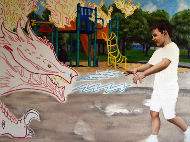 WIP: I painted this first with opaque paints (no medium) and found that I didn’t like the flatness, so I’ve done a second pass with glazes to brighten it up and give it more volume. I’m getting close to finishing…