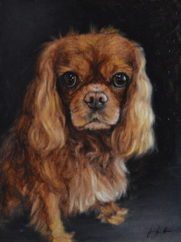 I’m running behind schedule on a commission because I didn’t like the first one and I’m doing a second. I started my process in the usual way on the first attempt by painting a burnt umber wash, waiting for it dry, and then painting using various browns. It didn’t work. I realized that the background had to be warmer, so I started the second attempt with cadmium orange instead (which took foreeeeever to dry). I think it works better with the blond, but I need to do a second pass and paint in the background flowers still. Lesson learned: you can’t do golden dogs like other dogs.