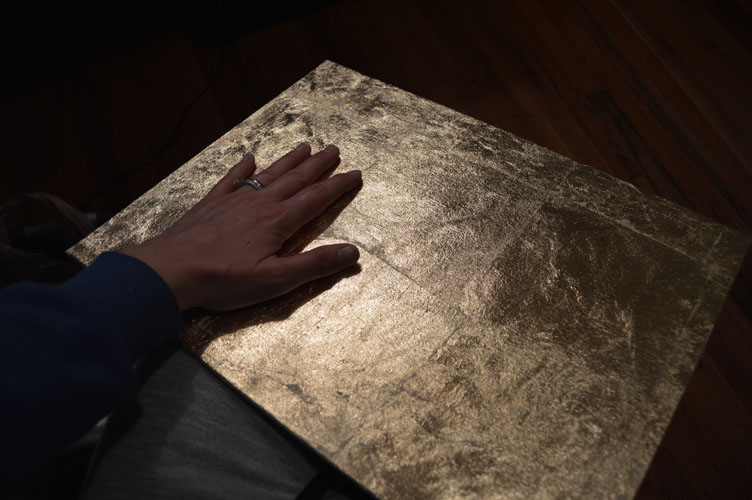 WIP: Just burnt umber and walnut oil on gold leaf so far…