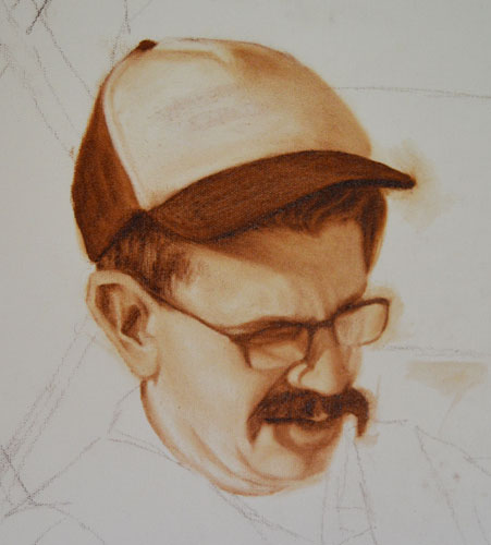 WIP (maybe?): I’m undecided as to whether or not to go further on this portrait. I like the grisaille and I’m reluctant to put any colour on this. Whenever I use Titian’s techniques (as opposed to Caravaggio’s, my normal method) something always seems amiss with the glazing – it’ll look great in the flesh, but will not photograph well.