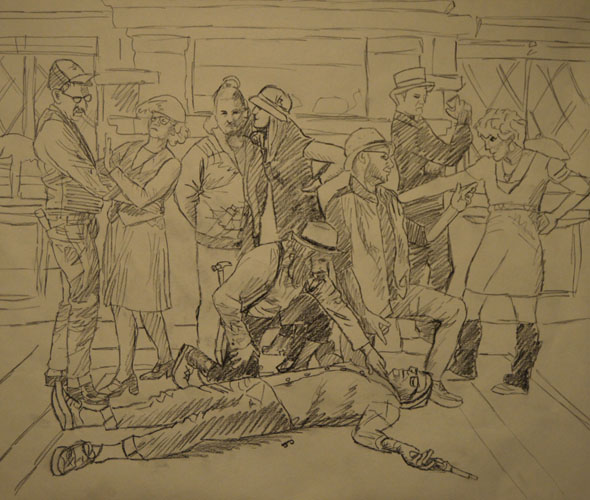 I’ve done this drawing in preparation for a new painting based on a hundred photos I took this past weekend. I’m trying to work out body language and positioning. I want the bodies have an equal weight on both sides and appear balanced. I’m not there yet… but close.