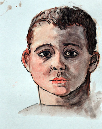 Nico is home sick from school today so we’re playing around with watercolours. Even though he’s sick (and looks it here) he would not sit still long enough! I did this in about 20 min.