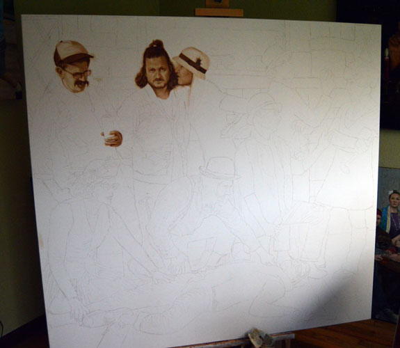 I’ve been working this painting for a week and this is it! At 60 x 56″ this is going to take a long time.