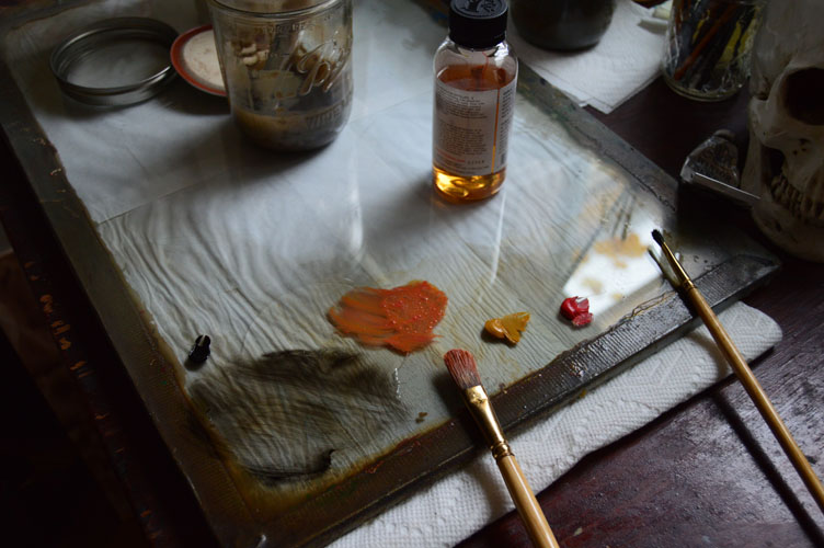 I’m just finishing up this painting; I’m glazing in the final layer of colour and adding white/yellow highlights. Sometimes I step back from it and I’m surprised at how realistic it looks.