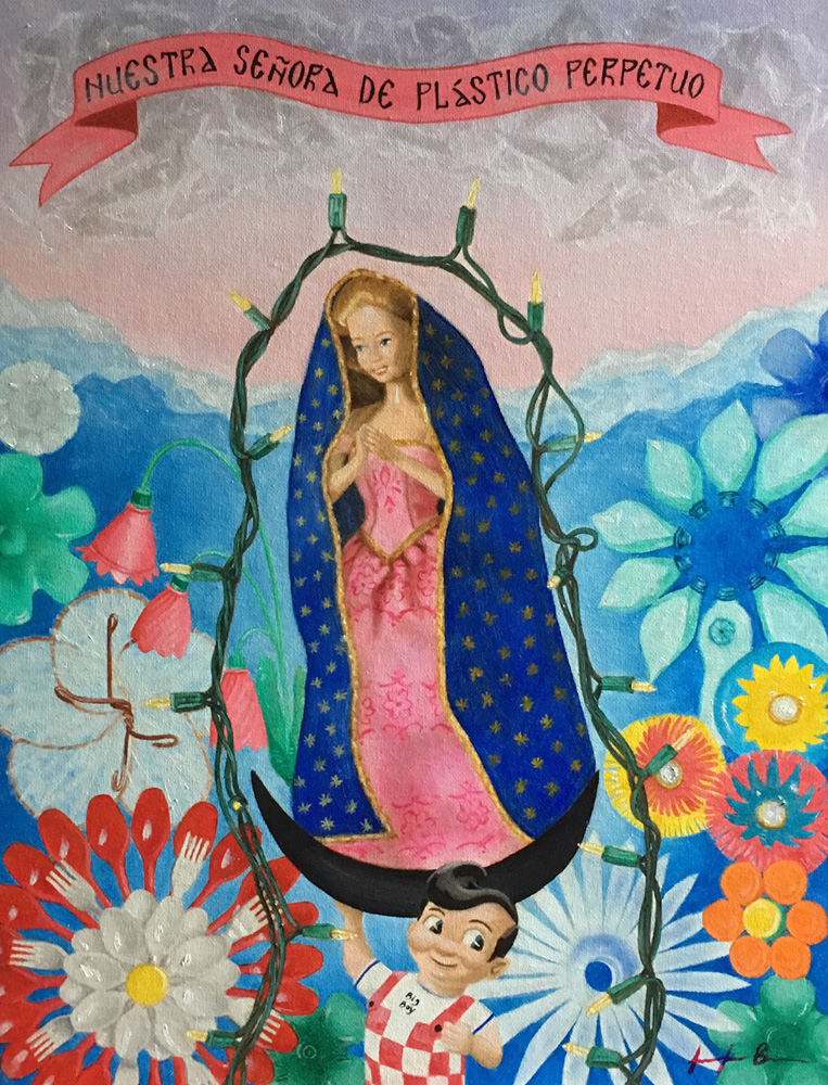 Our Lady of Perpetual Plastic, 2020, oil on canvas board, 14x18"