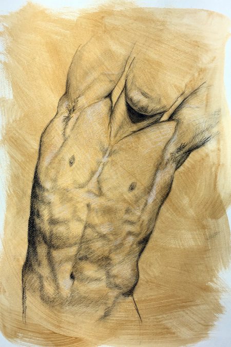 Gold Torso, 2021, charcoal on acrylic, 15x22"