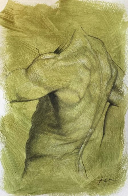 Green Torso, 2021, charcoal on acrylic, 15x20"